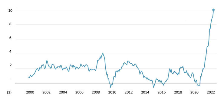 For those who still doubted it, inflation is back on a global scale, especially in Europe where it has more than doubled expectations over the last six months. In fact, it has reached the record rate of +10.0% in September 2022 (+0.9 p.p. vs. August 2022 and +5.9 p.p. vs. September 2021).